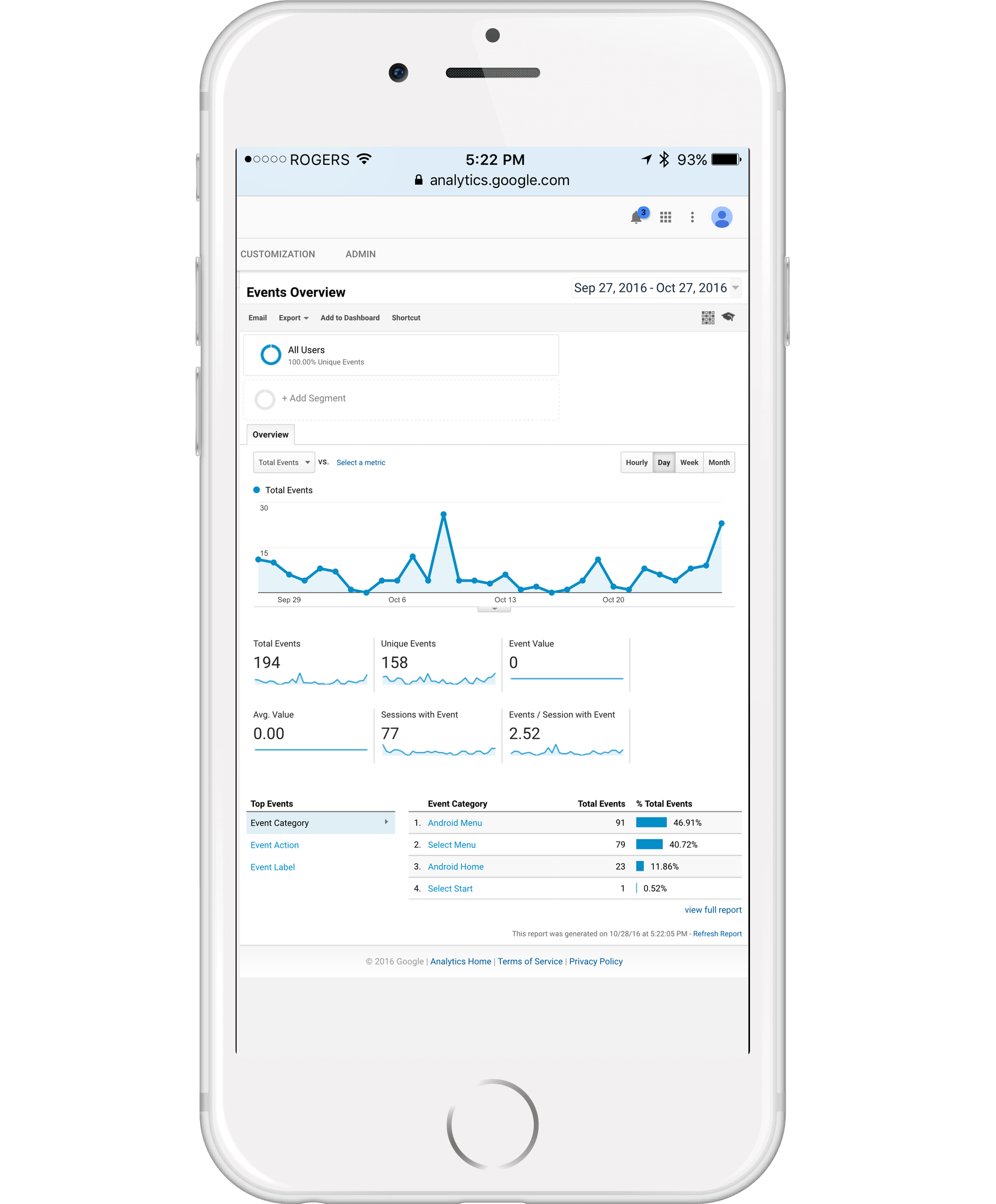 There is a great deal of content on the web about what Google Analytics is so we won't go into this deeply. Google Analytics provides you with extensive metrics on who is accessing your website. Their demographics, their behaviors. We take it one step further. Our apps have Google Analytics baked right in so that when your customers choose a menu item or closes an ad, you'll know all about it. You can quickly determine which menu items is touched most often and for how long. There's just so much information in Google Analytics that we're sure you'll love the information the apps give..